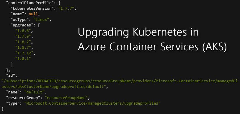 Updated 2018-03-23: With the latest version of the CLI the get-versions command has been replaced with get-upgrades in regards to seeing what upgrades are available. Thanks to my buddy Thorsten for the heads up. The details below has been updated to accommodate these changes. While working a lot with AKS