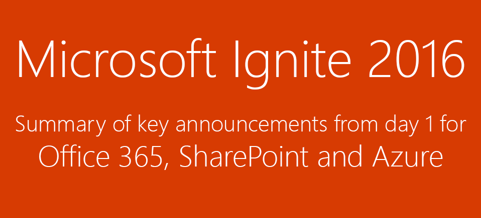 In the flood of announcements from Ignite 2016 today, I noted down my favorites about Office 365, Azure and SharePoint. Enjoy. SharePoint Server Announcements I only found one interesting SharePoint Server announcement today, and that was the announcement about Feature Pack 1 for SharePoint Server 2016. The Feature Pack contains