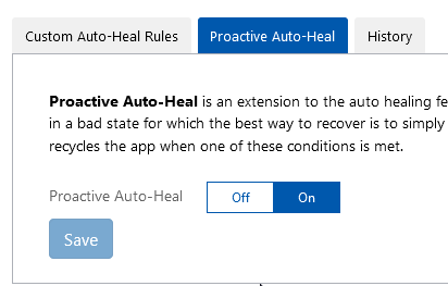Proactive Auto-Heal is an extension to the auto healing feature of Azure App Service. It will only take corrective actions for the sites that we have deemed to be in a bad state for which the best way to recover is to simply restart them. Proactive Auto-Heal monitors for high memory and slow response situations and recycles the app when one of these conditions is met.