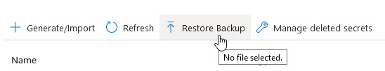 At this point you’ve got a file containing your encrypted value of your key, secret, or certificate. This can only be restored into the same subscription, all from within the Azure Portal.
