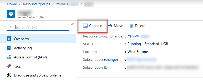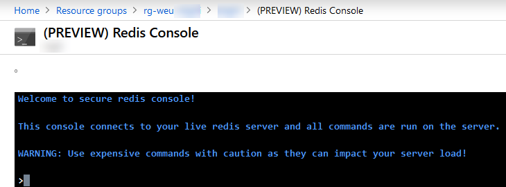 Connect to the Azure Cache for Redis console from the Azure Portal