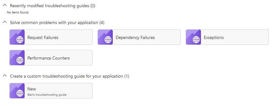 Select a troubleshooting guide in Application Insights.