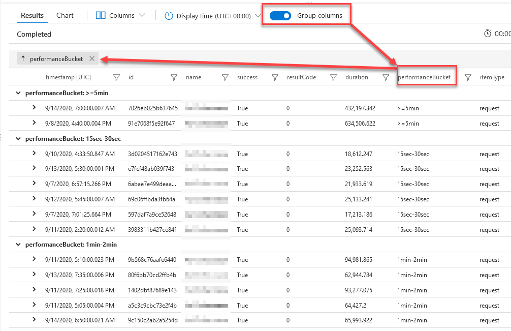 Group columns in Application Insights to get better data from your logs