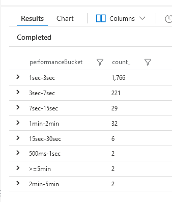 | summarize count() by performanceBucket