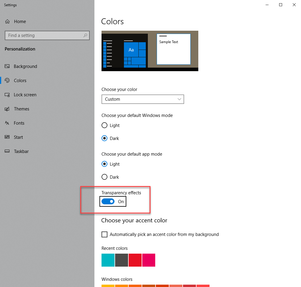 1. Enable Windows Transparency Effects
