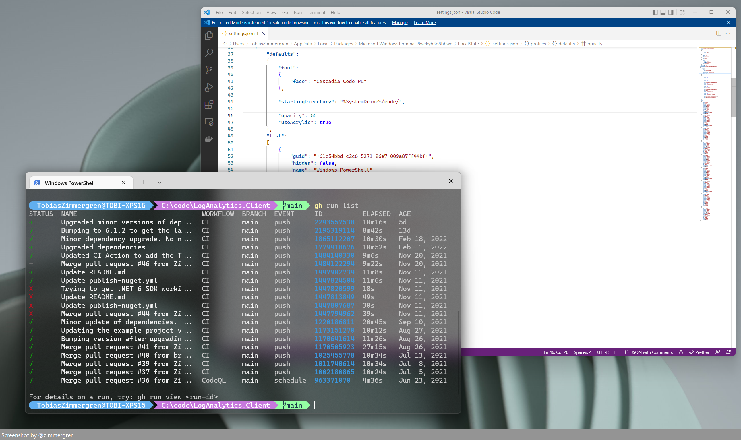 Windows Terminal has full transparency enabled on Windows 11.