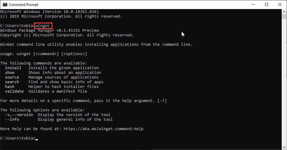 When I am publishing this article, in May 2020, the winget tool is in preview.