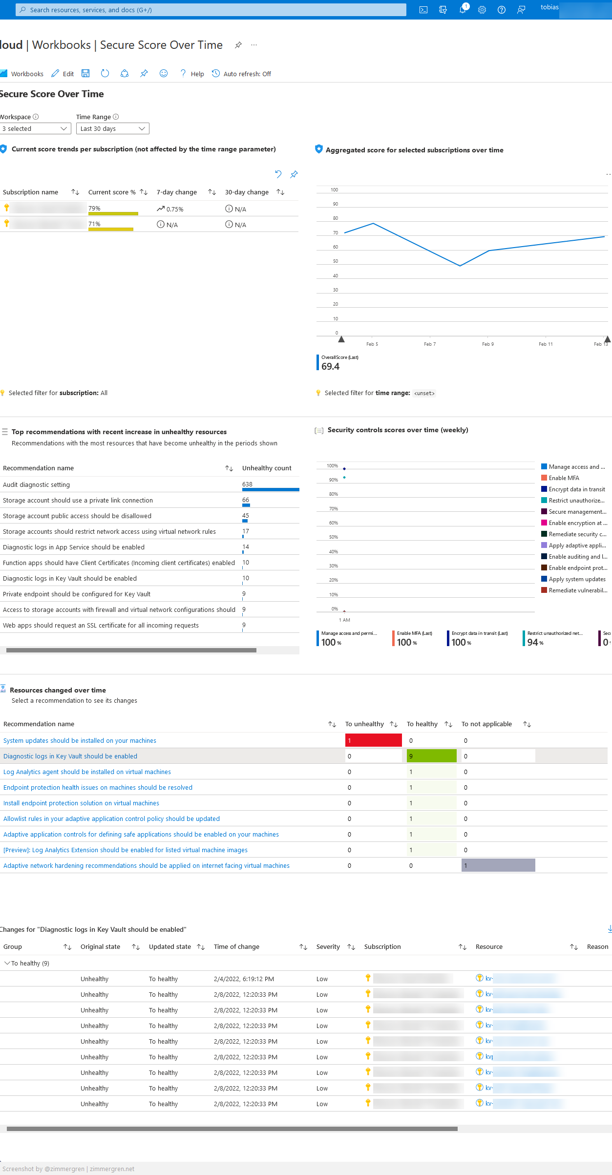 Determining whether you are increasing or decreasing your security posture can be an excellent way to shift focus when needed. I try to watch the secure score for many Azure subscriptions I have across my tenants.