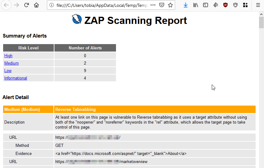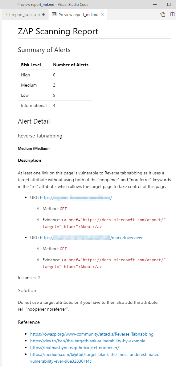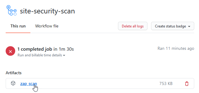 The OWASP ZAP scan produces a “zap_scan” zip file, containing all security assessment reports. Click it to download.
