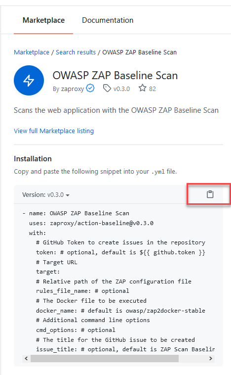 Depending on your requirements, you can opt-in to run either the OWASP ZAP Full Scan or the Baseline Scan. I’ll go with the Baseline scan for this example.