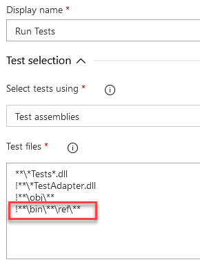 Solution 2. Ignore the /ref/ folder in your test tasks in Azure DevOps