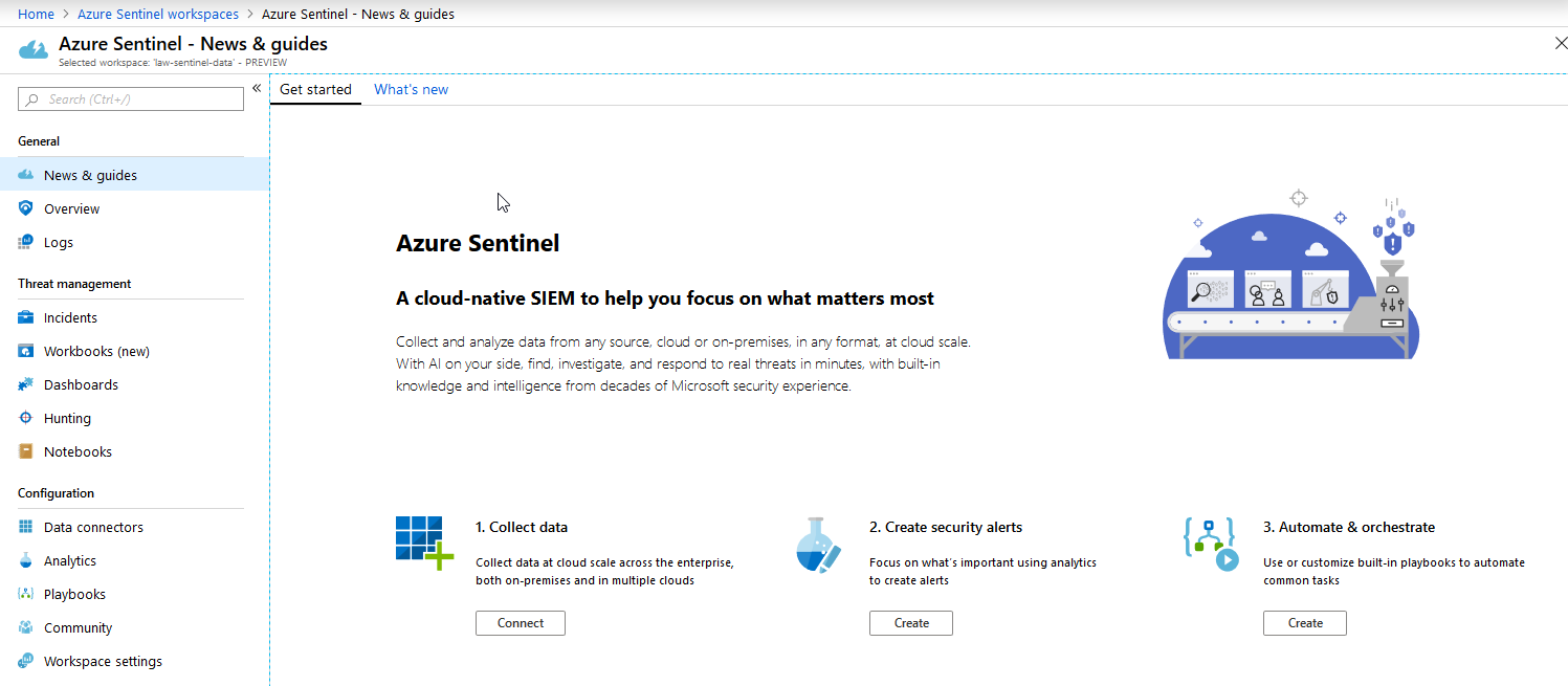 At this point, we have Azure Sentinel up and runnig and connected to our new LAW (Log Analytics Workspace). Next up: Connect the Office 365 logs.