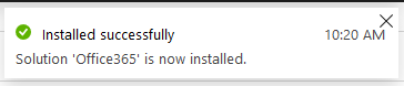 Clicking “Install solution” is super quick and gives you a notification saying everything is fine and dandy: