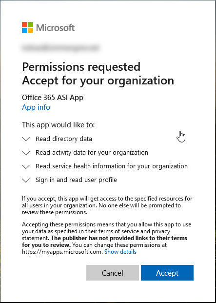 Azure Sentinel Offie 365 Connector App requesting Read Only access