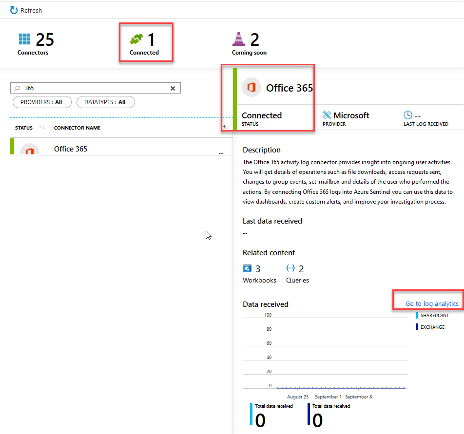 SharePoint and Exchange logs to be ingested by Azure Sentinel after connecting your Office 365 data connector
