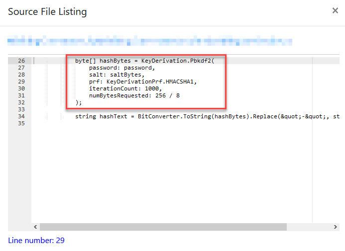 Displaying a match for the associated rule in the Microsoft Application Inspector.